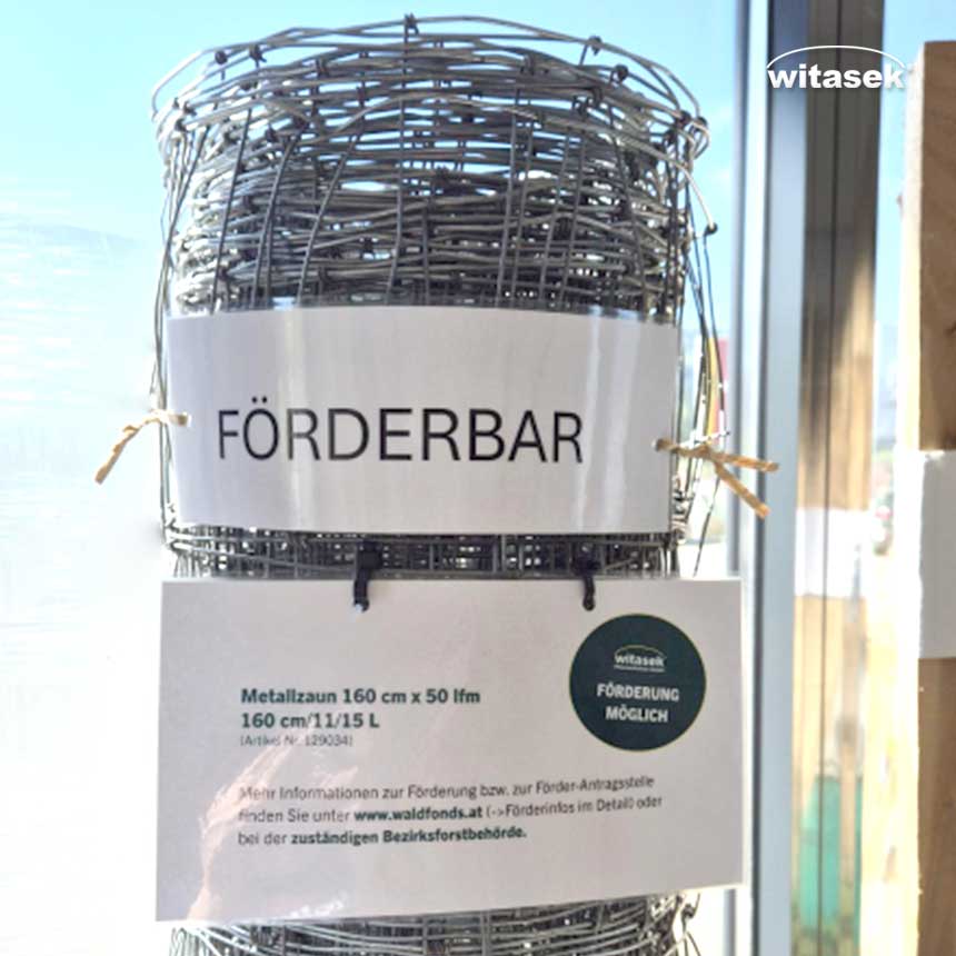 Aktuell besonders interessant ist die Fördermöglichkeit des WitaPro® Metallzaunes in der Höhe 160 cm / 11 / 15 L, welcher österreichweit vom „Der Waldfonds“ (www.waldfonds.at) unterstützt wird. Die Förderung kann ausschließlich für dieses konkrete Zaunmodell beantragt werden.